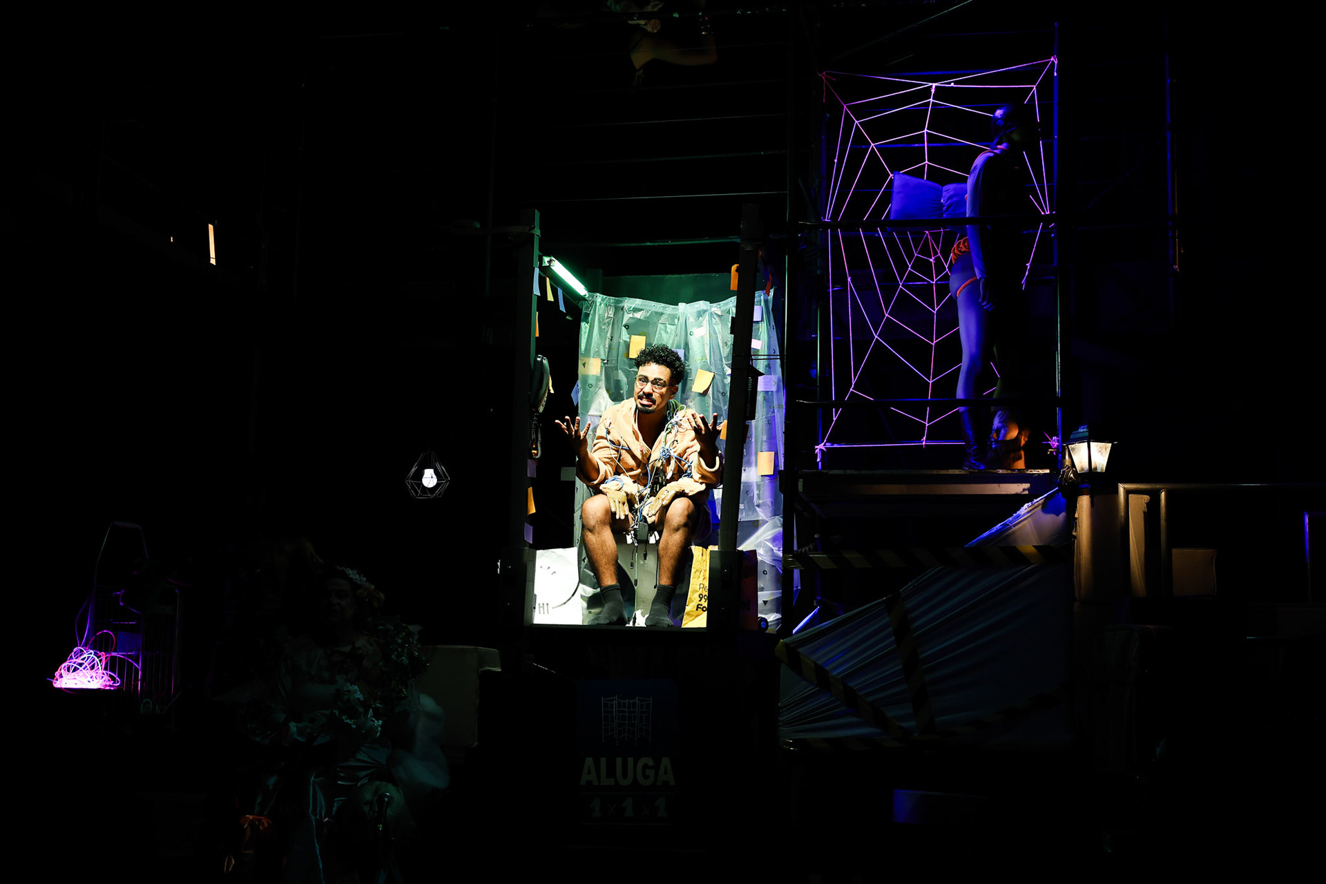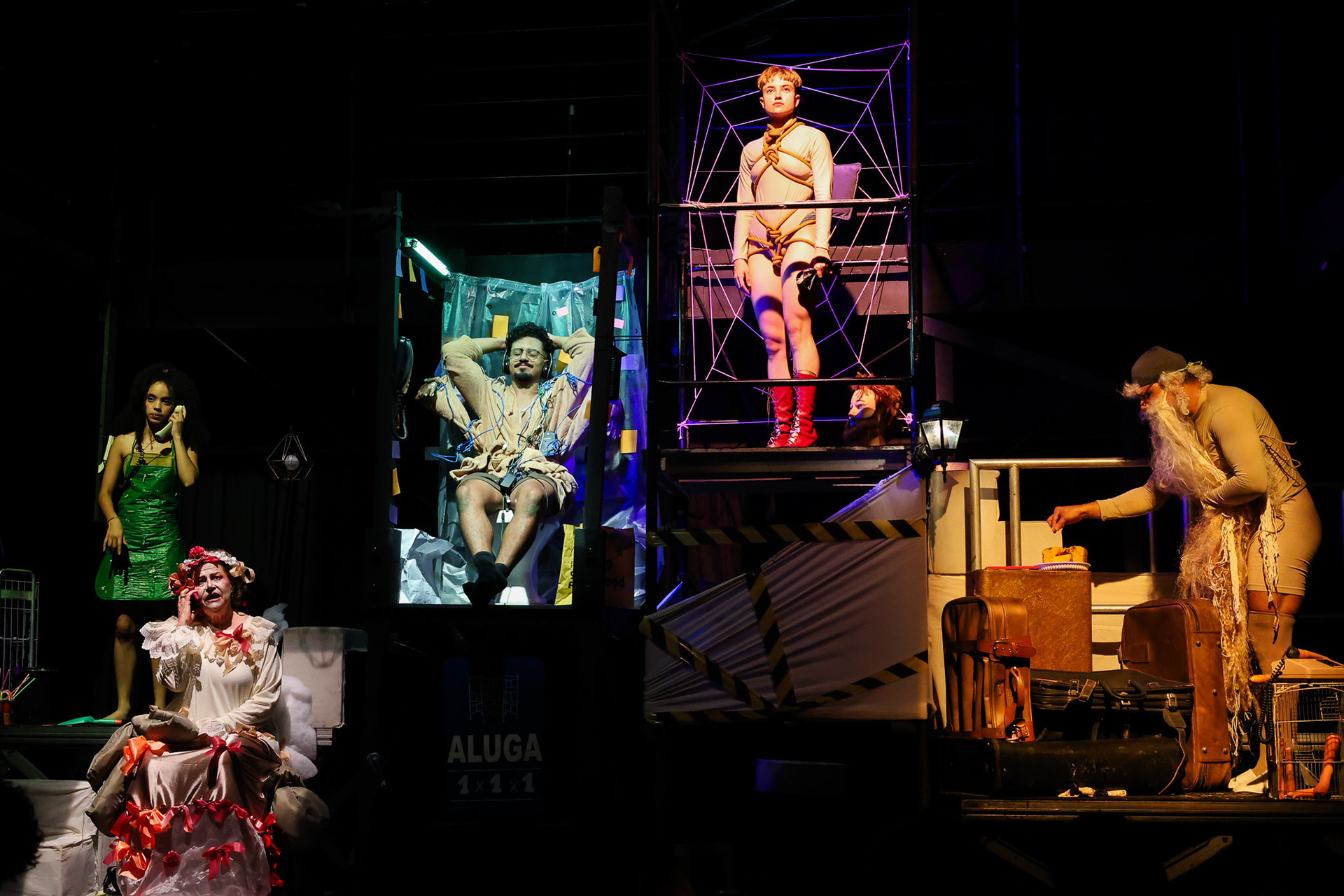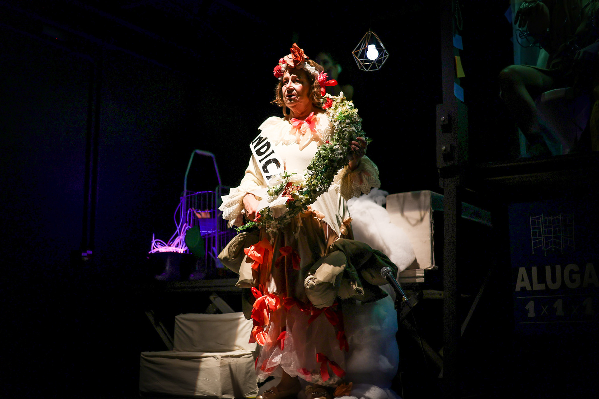 Ficha Técnica Cenografia e Figurino: Fê Faria, Niki Cavalcante e Vitu Direção: Bárbara Roma, Lucca Strabelli e Natane Figueredo Dramaturgia: Lidi Seabra Dramaturgismo: Agatha Selva e Sophia Gobbi Elenco: Édipo Queiroz, Ester Fello, Fellipe Marcelino, Isabela Suckow e Valquiria Pimentel Iluminação: Júlia Zavanelli e Nero Murphy Sonoplastia: Índigo e MD Técnicas de palco: Larissa Baldissera e Mariana Guillen